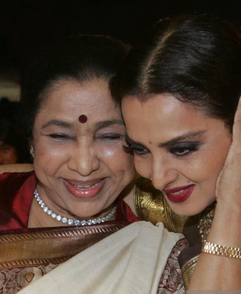 আশা ভোসলে ও চিত্রনায়িকা রেখা। ছবি: সংগৃহীত