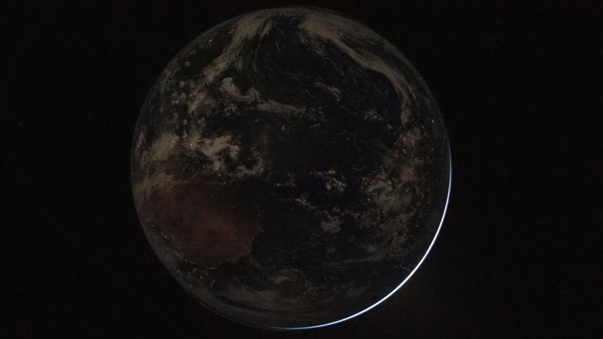 নাসা আরও একটি ছবি প্রকাশ করেছে, যেখানে পৃথিবী প্রায় অন্ধকারে দেখা যায় এবং মানুষের তৈরি আলো ঝিকমিক করছে।
