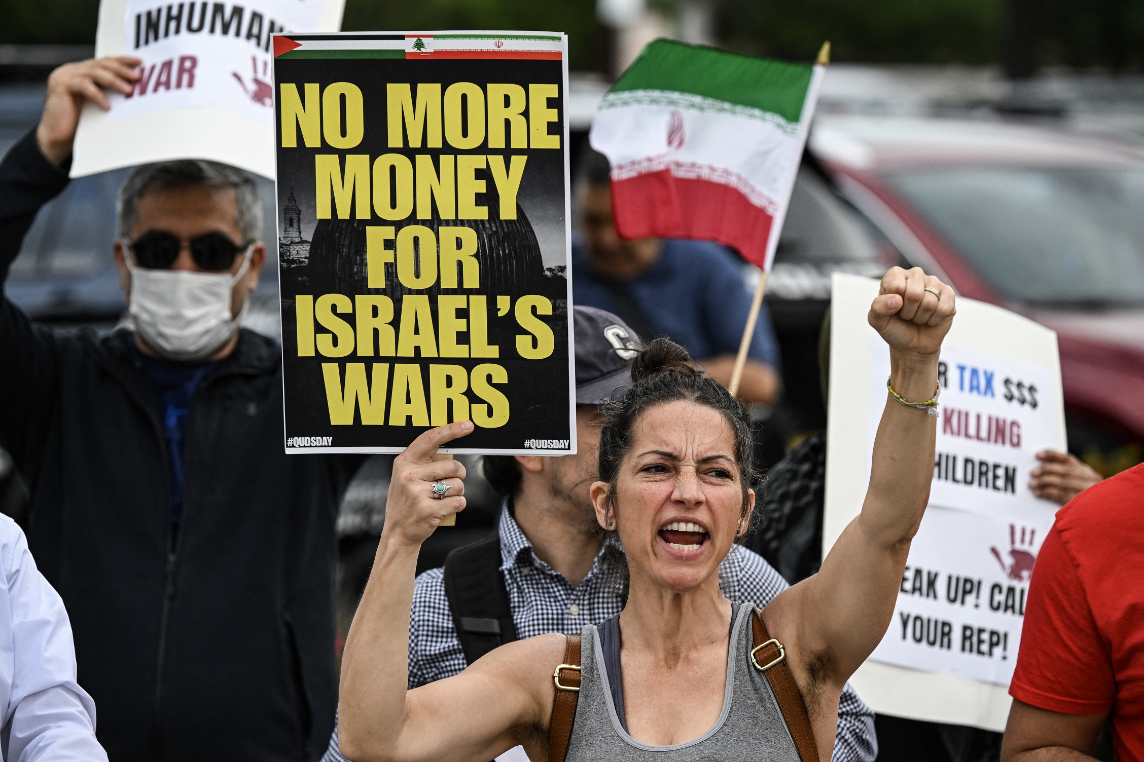 ইরানে মার্কিন সামরিক পদক্ষেপের বিরুদ্ধে যুক্তরাষ্ট্রের টেক্সাস অঙ্গরাজ্যের হিউস্টনে বিক্ষোভ। ছবি: এএফপি